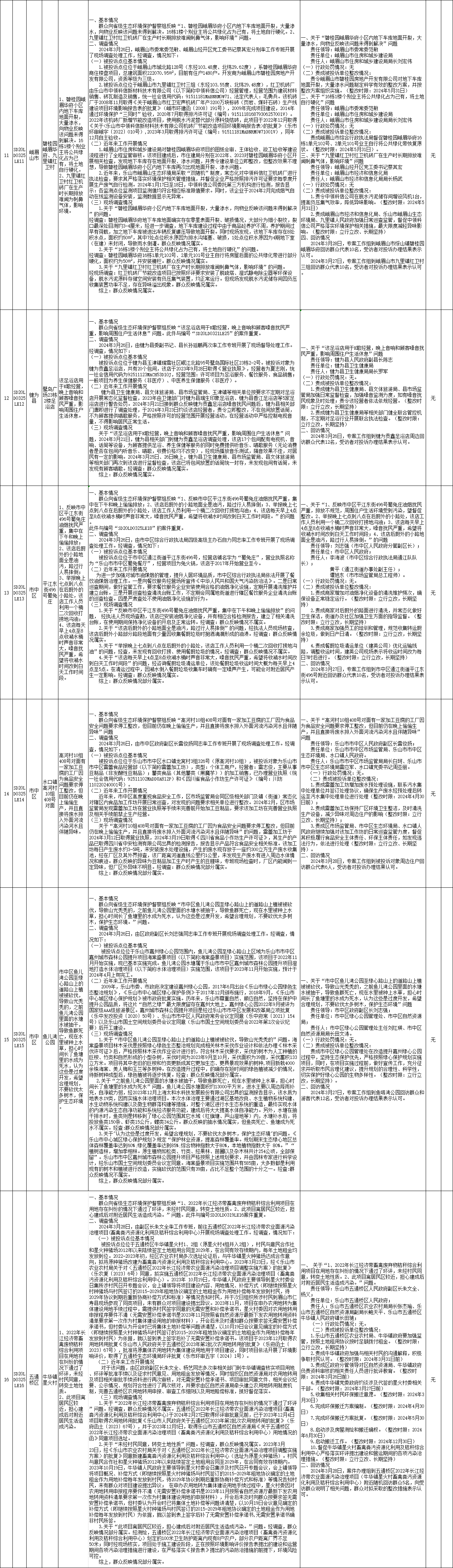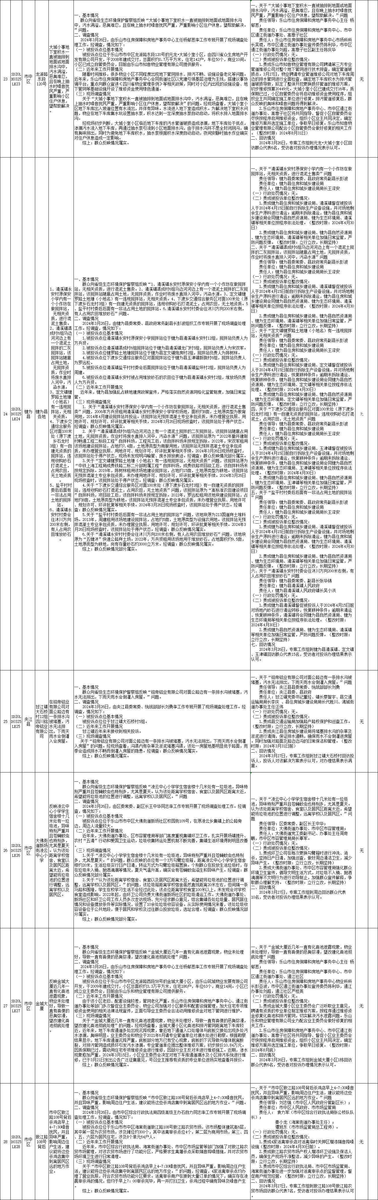 四川省生态环境保护督察群众来电来信举报调查处理情况公示表(第8批,2024年3月25日)