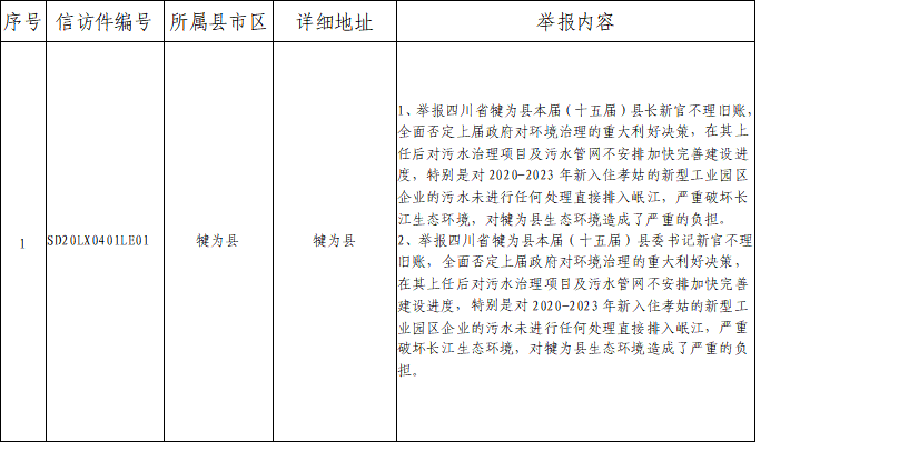 四川省生态环境保护督察群众来电来信举报受理情况公示表(第15批,2024年4月1日受理)