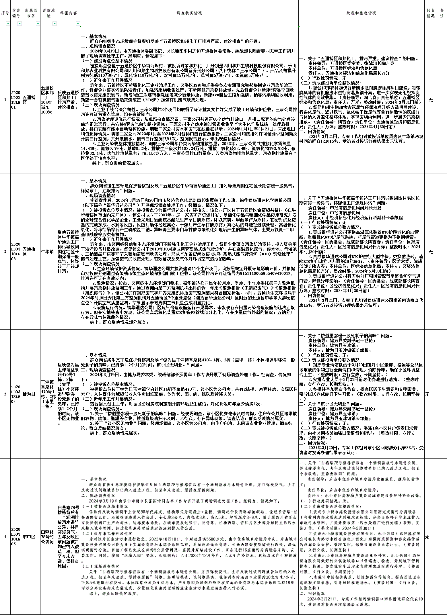 四川省生态环境保护督察群众来电来信举报调查处理情况公示表-(第1批,2024年3月18日)