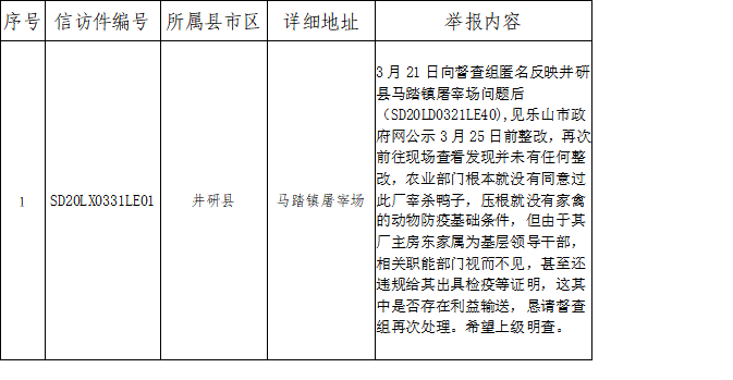 四川省生态环境保护督察群众来电来信举报受理情况公示表