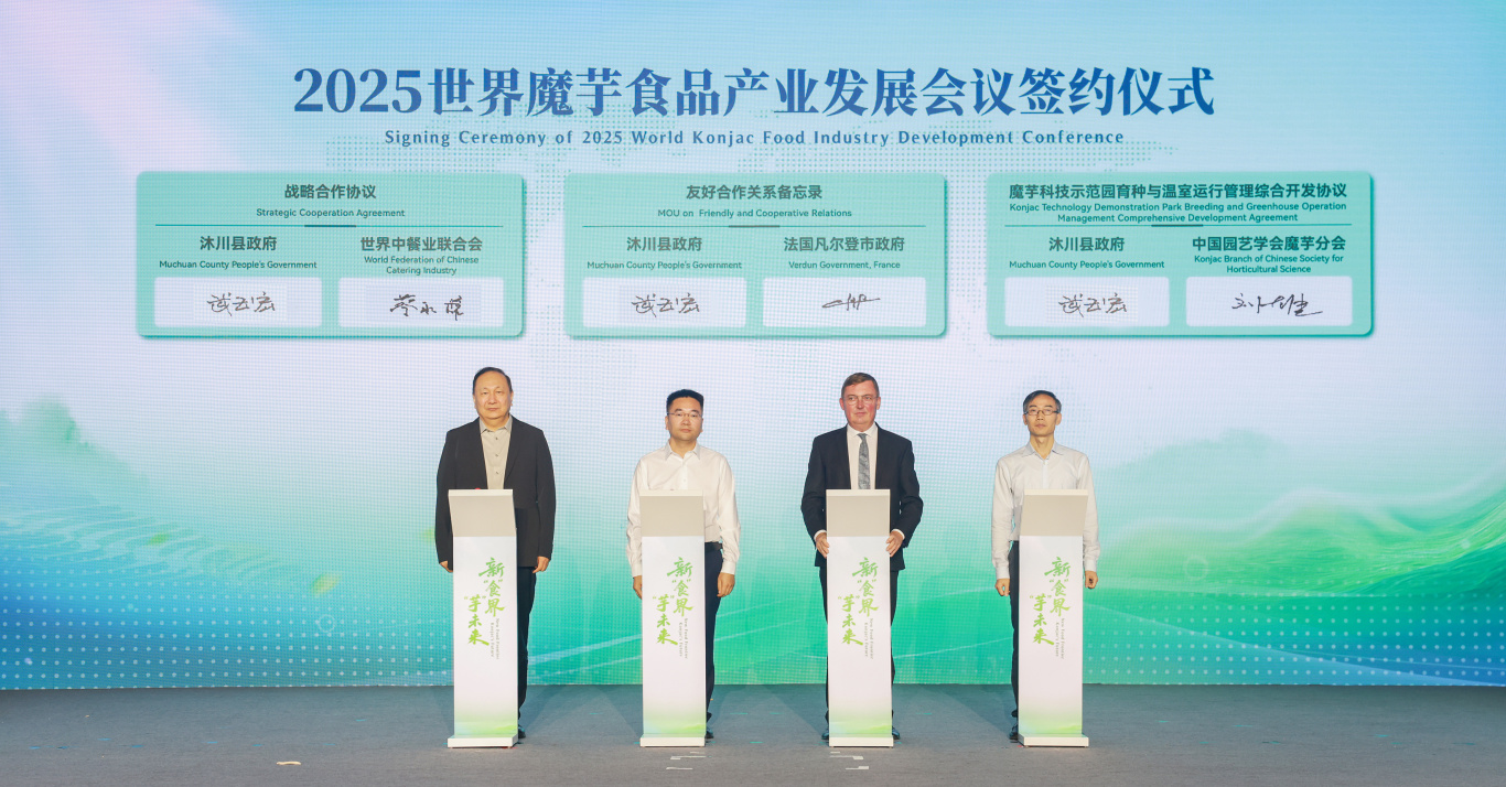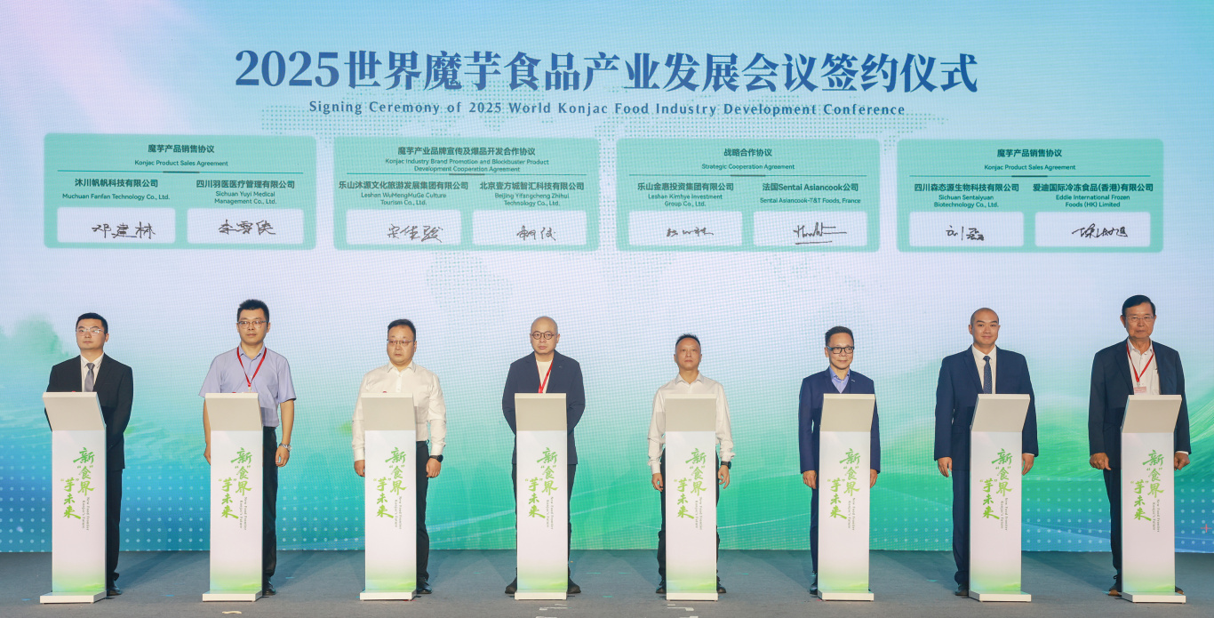 开幕式上还举行了签约仪式,沐川县与法国凡尔登市签订友好合作关系备忘录,与世界中餐业联合会签订战略合作协议,与中国园艺学会魔芋分会签订合作协议;现场还签订了企业合作协议8项、总金额3.73亿元。