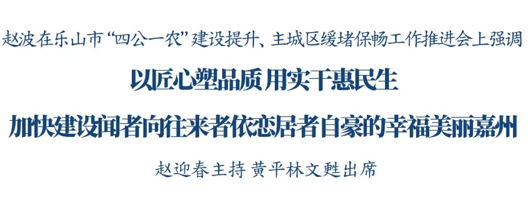 7月24日,乐山市“四公一农”建设提升、主城区缓堵保畅工作推进会召开。市委书记赵波出席会议并讲话。他强调,要深入学习贯彻习近平总书记关于城市工作的重要论述,认真落实中央城市工作会议精神,践行人民城市理念,高质高效推进“四公一农”建设提升和缓堵保畅工作,以匠心塑品质,用实干惠民生,加快建设闻者向往、来者依恋、居者自豪的幸福美丽嘉州。
