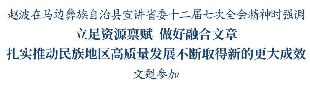 7月14日,市委书记赵波前往马边彝族自治县宣讲省委十二届七次全会精神,调研农旅融合发展、人大代表之家建设工作,督导防汛减灾工作。他强调,要深入学习贯彻习近平总书记对四川工作系列重要指示精神,认真落实省委十二届七次全会部署要求,立足资源禀赋,做好“文旅+百业”“百业+文旅”融合文章,扎实推动民族地区高质量发展不断取得新的更大成效。
