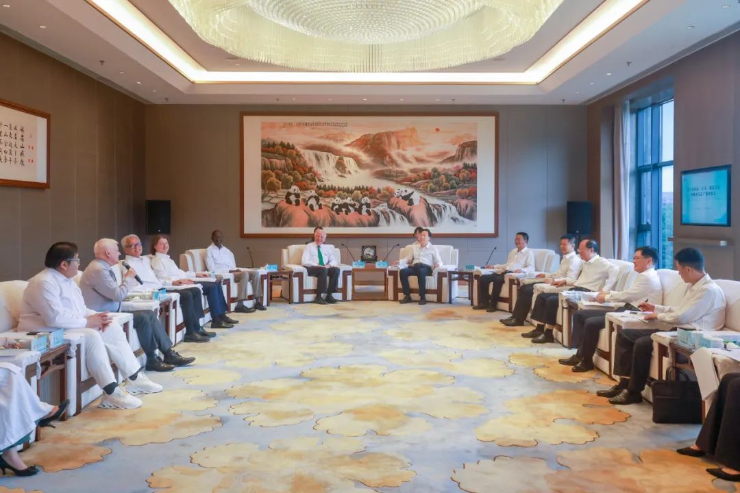 开幕式前,赵波、赵迎春会见了与会嘉宾代表,代表市委、市政府向各位嘉宾的到来表示热烈欢迎,向大家长期以来对乐山的关心支持表示诚挚感谢。赵波说,乐山是钟灵毓秀的历史文化名城、香飘世界的绿茶之都、机遇无限的兴业福地。近年来,我们深入学习贯彻习近平总书记关于统筹做好茶文化、茶产业、茶科技这篇大文章的重要指示精神,把茶产业作为“241”现代工业产业体系中食品饮料特色产业集群的重要部分,持续推动茶文旅、茶农旅融合发展,茶产业综合实力居全省前列。衷心希望与会各方以此次大会为契机,共同建立更加紧密的沟通机制,共同搭建更加高效的产销平台,共同开创绿茶产业高质量发展的美好未来。