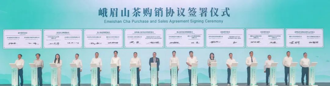 开幕式上,举行了协议签署仪式。在热烈掌声中,姜增伟、吉布斯、曹德荣、赵迎春、赖淑芳、黄平林、宋惠勤、乔方、黄宇、文甦共同按下启动装置,第六届国际(乐山)绿茶大会暨峨眉山茶产销对接会开幕。