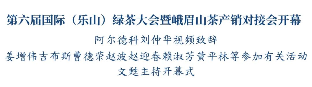 7月17日,以“峨眉山茶世界共享”为主题的第六届国际(乐山)绿茶大会暨峨眉山茶产销对接会在乐山市峨眉山市开幕。联合国粮农组织驻华代表阿尔德科,第二十届中央候补委员、中国工程院院士、湖南师范大学校长刘仲华视频致辞。全球服务贸易联盟理事长姜增伟,国际茶叶委员会主席吉布斯,中国食品土畜进出口商会会长曹德荣,市委书记赵波,市委副书记、市长赵迎春,市人大常委会主任赖淑芳,市政协主席黄平林等参加有关活动。