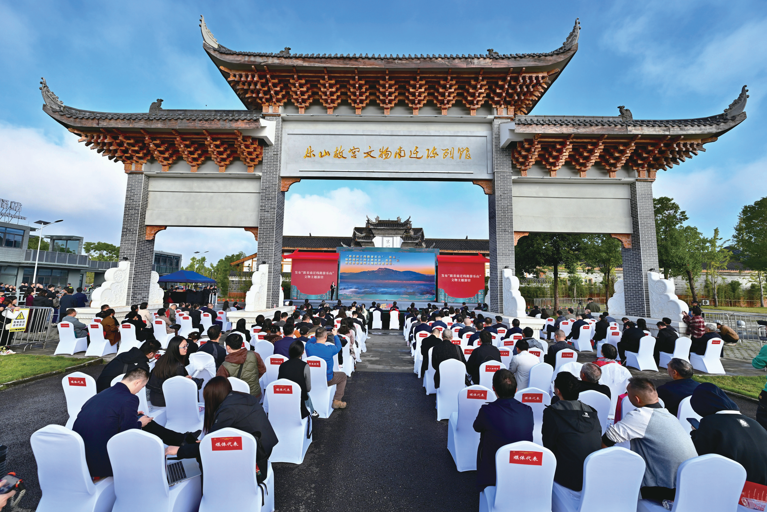 揭牌仪式上,发布了“跟着故宫文物南迁线路游乐山”主题游径。据了解,乐山故宫文物南迁陈列馆位于乐山高新区安谷镇,占地面积约1.4万平方米,是现存全国规模最大的故宫文物南迁主题展馆。陈列馆内设有常展区、故宫文物MR数字互动区、专展区等。