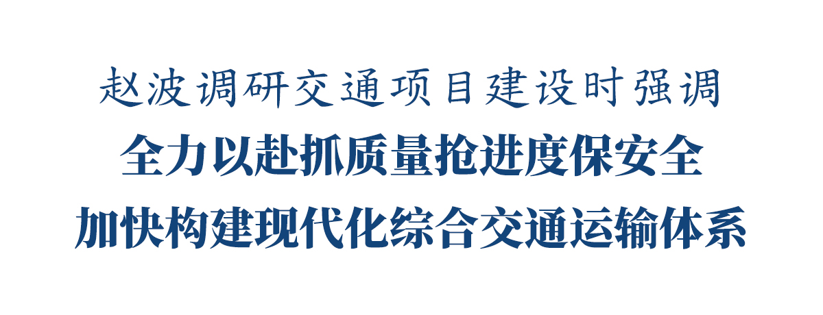 7月28日,市委书记赵波前往市中区、五通桥区调研交通项目建设工作。他强调,要深入学习贯彻习近平总书记关于交通强国的重要论述,全面落实党中央和省委决策部署,全力以赴抓质量、抢进度、保安全,加快构建现代化综合交通运输体系,为乐山经济社会高质量发展提供坚实支撑。