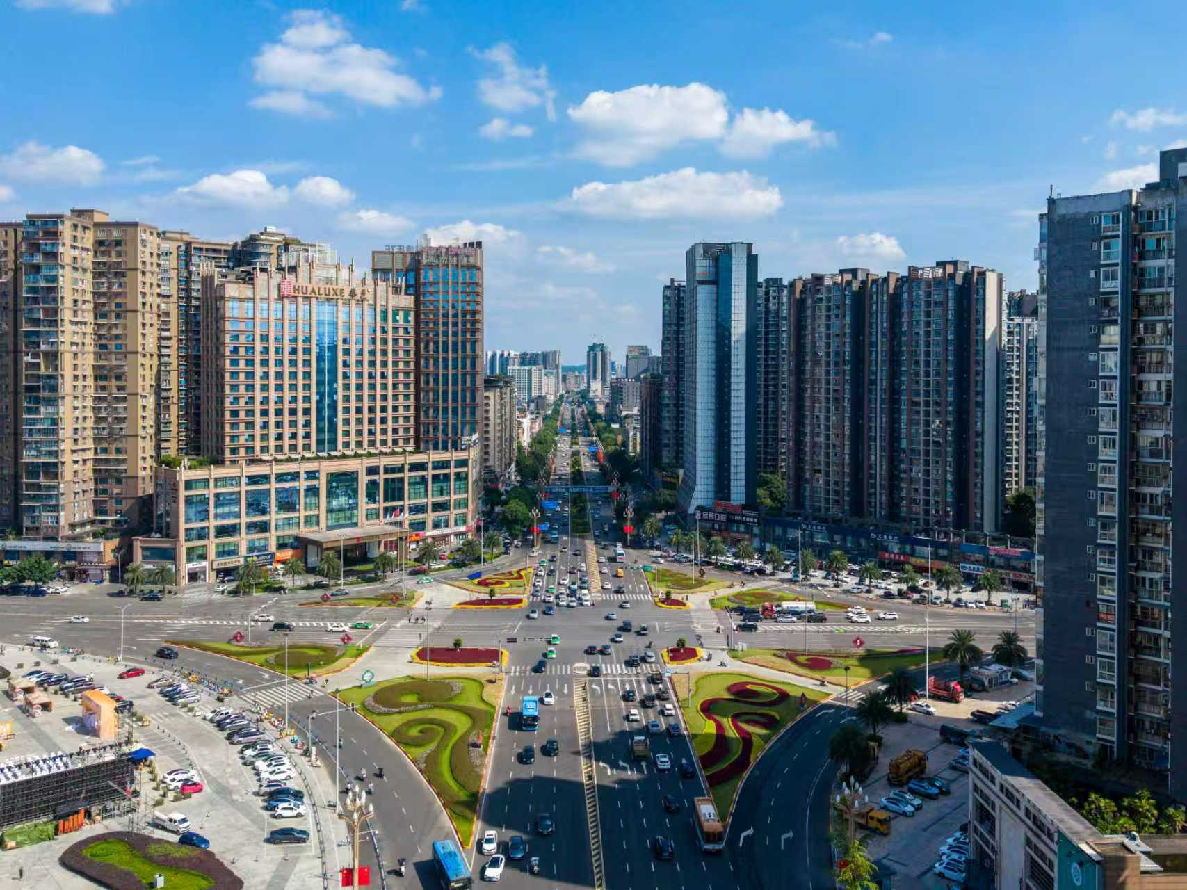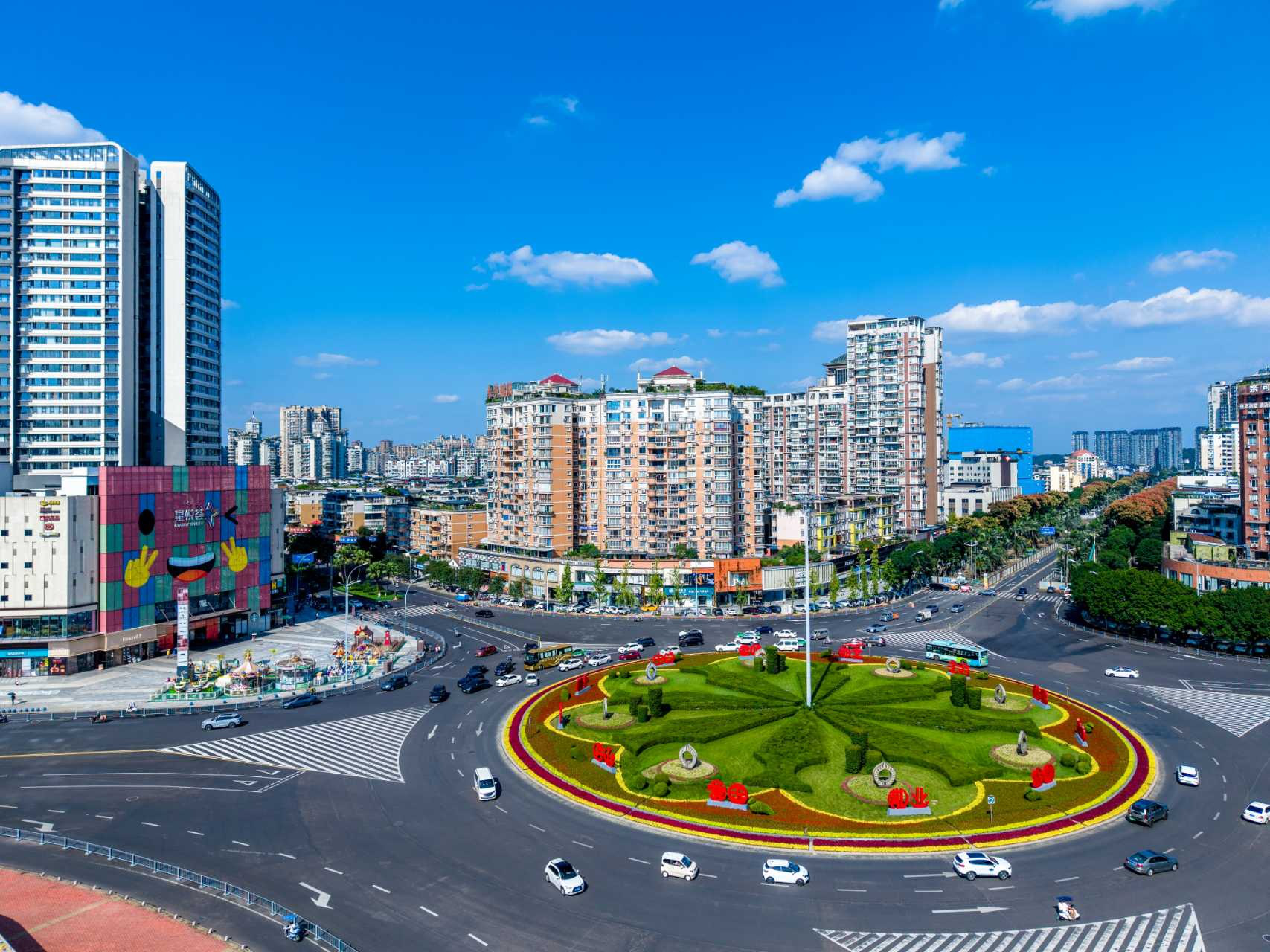 从高处俯视,交通岛的四角弧形轮廓宛如飘浮在空中的祥云,与周围的道路形成“云路相生”的美好意境。