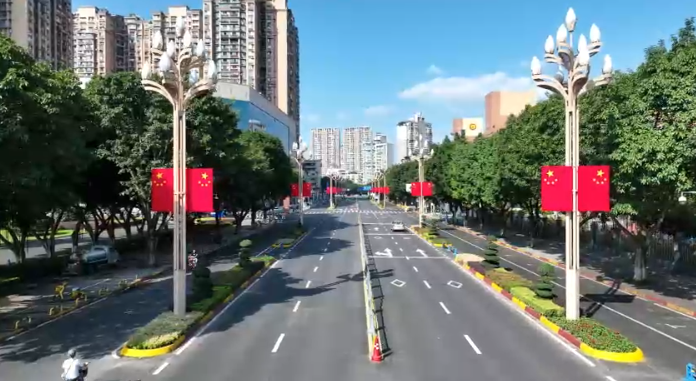 行走在天星路、柏杨西路等城市主干道,灯杆上一面面鲜艳的国旗整齐排列,庄重而热烈。那一抹抹鲜艳的红色,不仅点亮了城市街景,更在秋风中扬起一片家国同庆的深情,将节日的仪式感与观赏性融为一体。