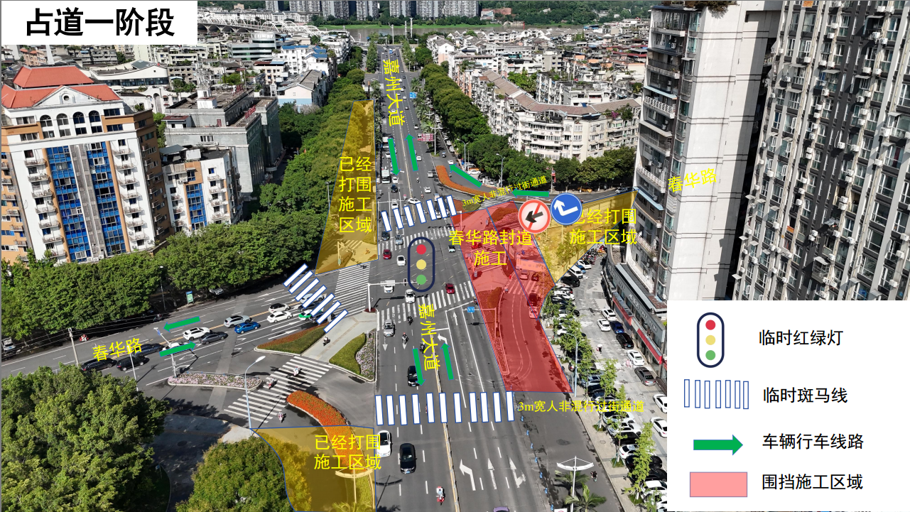 为提高城市排水防涝能力,我市正在实施乐山市市中区嘉州大道排水防涝改造工程,现阶段计划施工嘉州大道与春华路交会处南侧路口。为保障施工的顺利进行以及施工期间的安全,将对嘉州大道与春华路交会处南侧路口进行断道,时间为2025年11月6日至2025年12月6日,断道期间该路口机动车无法通行,非机动车及行人通过路口两侧临时过街通道通行。