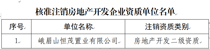 根据《中华人民共和国行政许可法》和房地产开发资质管理等相关法律法规的规定,乐山市住房和城乡建设局对申请人提交的资质注销申请材料进行了审查、核验、公示,现对以下企业的相关资质予以注销,通告之日起申请注销资质作废,特此通告!