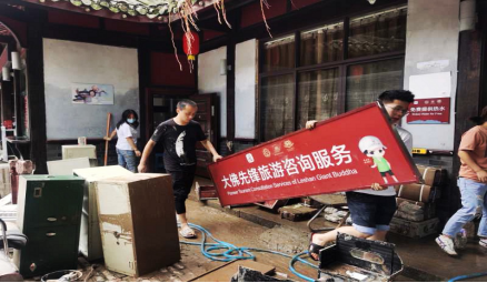 为尽快恢复生产经营秩序,从8月17日晚开始,大佛旅投集团调集各部门、各子公司出动人员 260人次,投入抽水机械 90台,抢险车辆109辆,沙袋 11900个,迅疾投入灾后恢复重建工作,及时奔赴各经营点、各项目现场、各办公区域进行清淤整理,全力以赴做好灾后生产恢复工作。