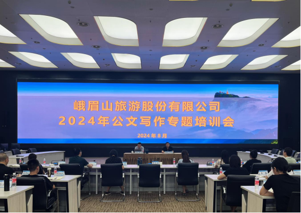 为全面提升峨旅股份公司公文写作水平,以高质量办文服务公司高质量发展,近日,峨眉山旅游股份有限公司召开2024年公文写作专题培训会。会议由公司行政总监苏真武主持,峨旅股份公司总部部门和分(子)公司主要负责人以及相关工作人员共计140余人参加培训。