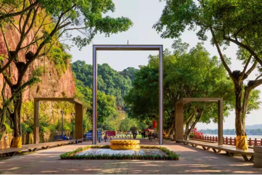 沿文化广场从北门经过大佛牌坊,凌云路左侧打造了“六度”佛语文化长廊,沿线设置“布施、持戒、忍辱、精进、禅定、般若”六个节点,打造情景化、景观化的深度沉浸式体验场所,全面展示景区博大精深的佛文化内涵,让游客在参观世界闻名的乐山大佛之前,感受弥勒佛成佛之路的非凡过程。