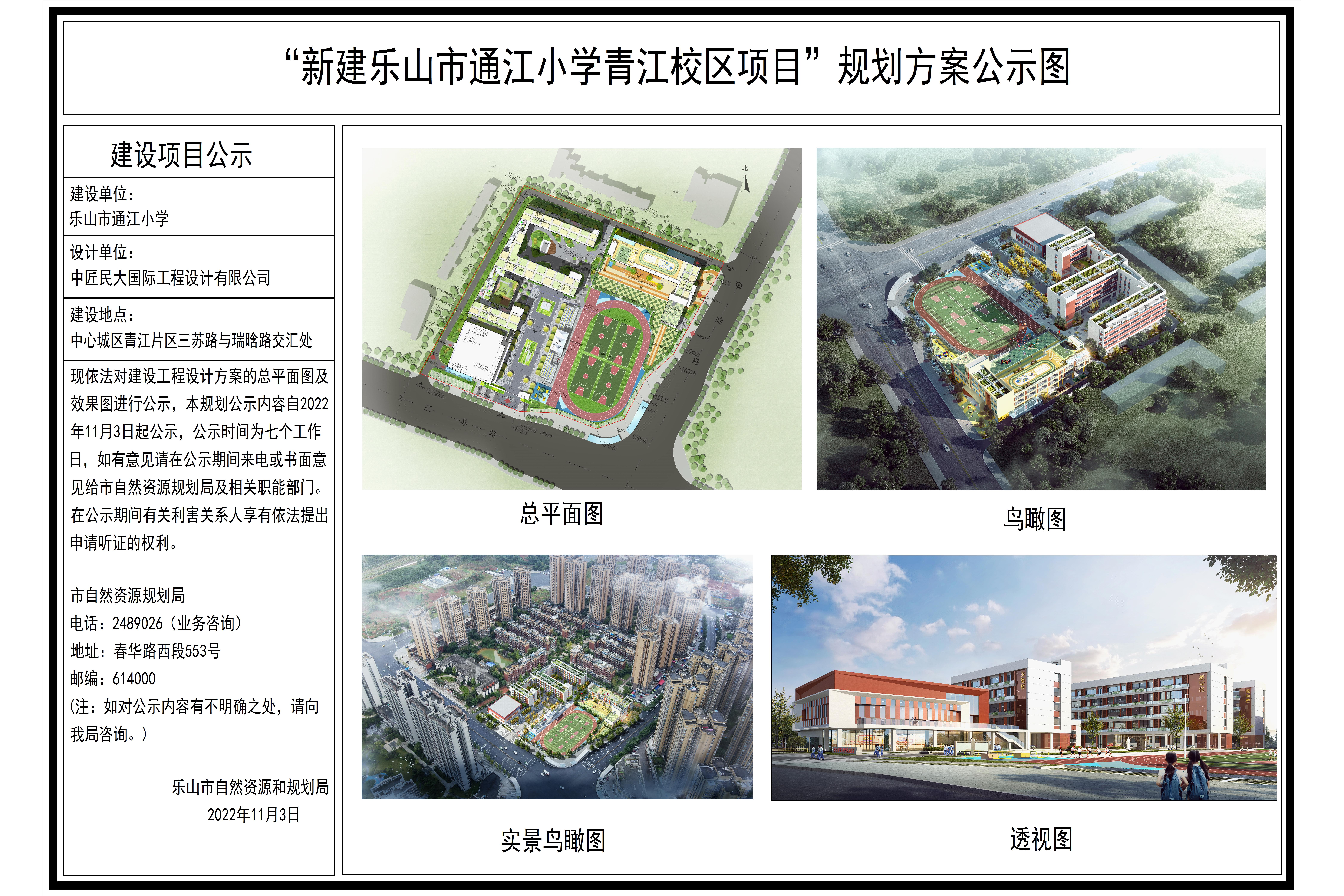 “新建乐山市通江小学青江校区项目”规划方案公示图