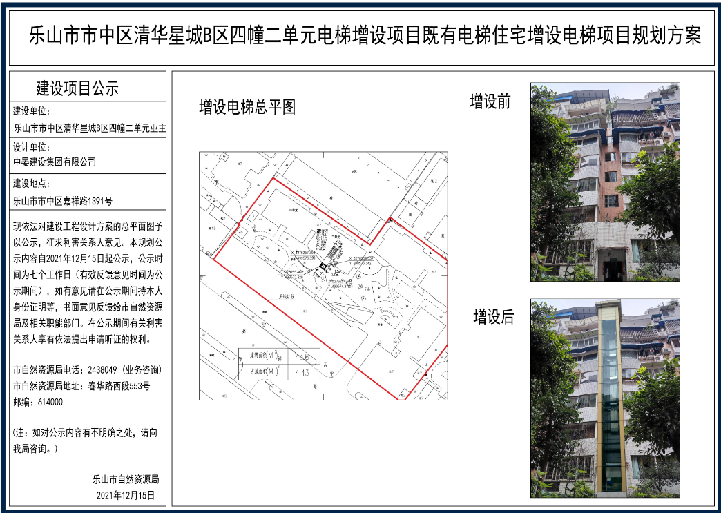 乐山市市中区清华星城B区四幢二单元电梯增设项目既有电梯住宅增设电梯项目规划方案