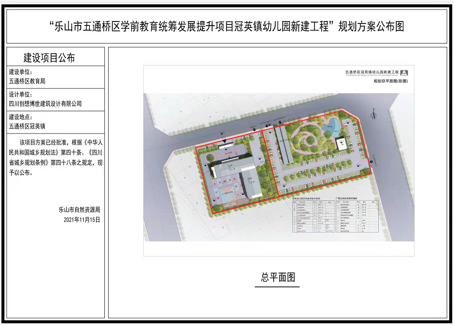 “乐山市五通桥区学前教育统筹发展提升项目冠英镇幼儿园新建工程”规划方案公布图