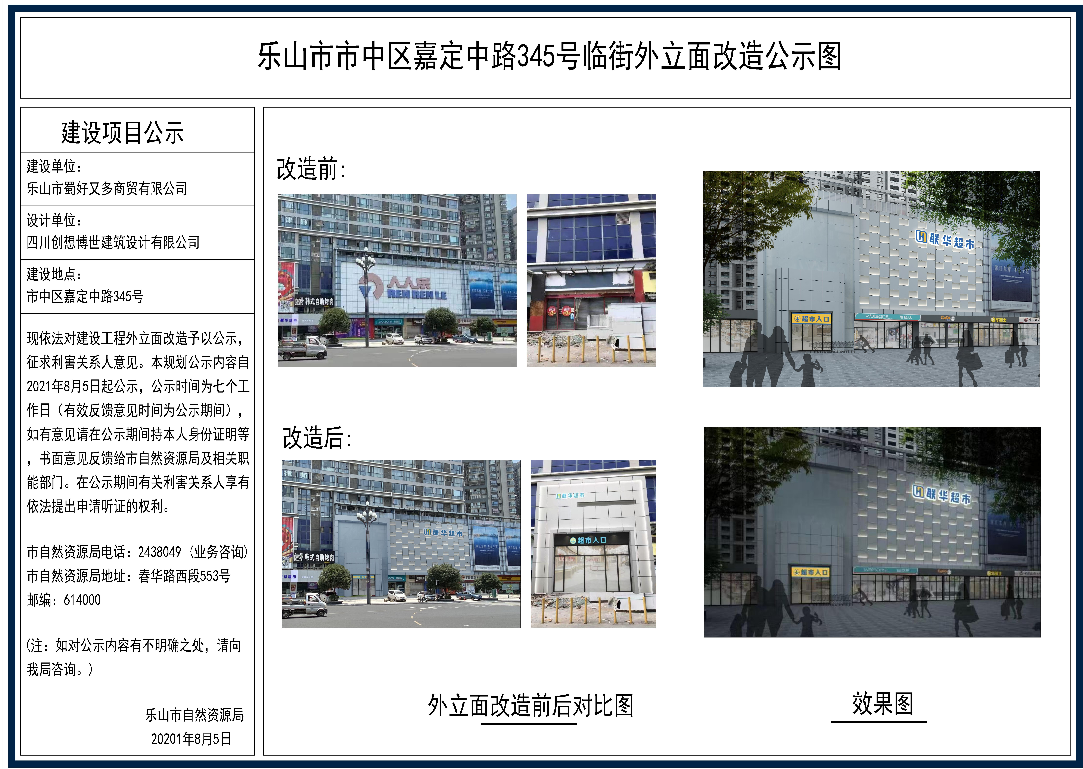 乐山市市中区嘉定中路345号临街外立面(局部)改造公示