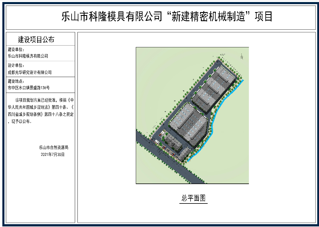 2021——乐山市科隆模具有限公司“新建精密机械制造”项目公布-Model