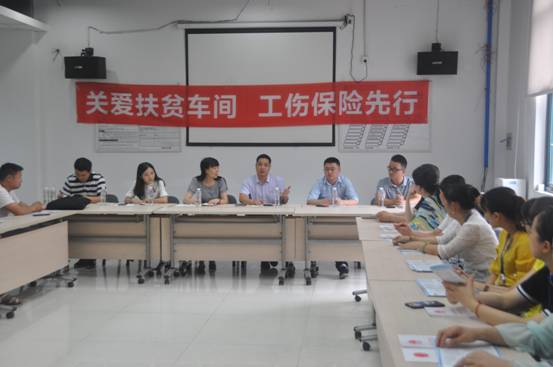 近日,为提高扶贫车间和职工参加工伤保险的意识,有效降低企业用工风险,防范职工因工伤致贫返贫,市人力资源和社会保障局养老保险科、行政审批科、市社保局、市医保局、市劳动能力鉴定中心和峨眉山市人社局相关同志一行9人在峨眉山金威利运动用品有限公司扶贫车间开展“工伤保险走进扶贫车间”主题普法宣传活动,向企业职工宣传工伤保险法规政策。