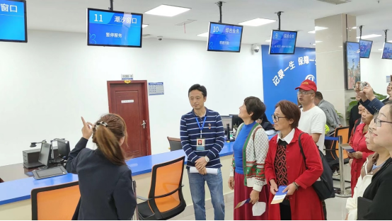 在社保适老化服务区,一位参保群众正在工作人员的引领下申办退休。体验代表一边现场实景体验服务过程,一边听取企业职工“退休一件事一次办“的情况介绍。近年来,社保经办机构联合医保、公积金等部门打造一站式服务平台,以企业职工退休“一件事一次办”为着力点,通过资源整合、数据共享、信息互认,实现线上“一网登录、一次申报、一次办结、一体反馈”,线下“一次申请、一窗受理、一次跑动、一体反馈”,线上线下均能顺利办理,为群众提供更加便捷、更有温度的经办服务。