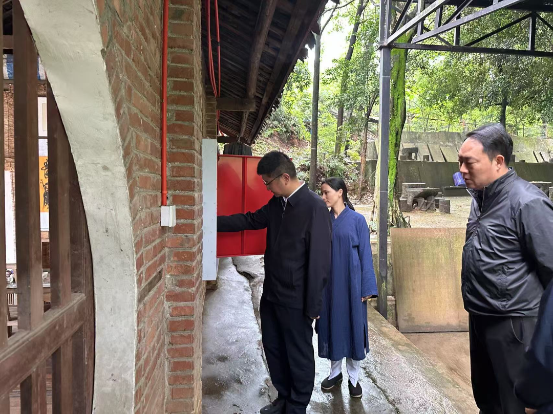 席代金一行先后对乐山高新区洛都寺、市中区紫霞宫,夹江县二郎庙、观音寺、天主教堂等5个宗教活动场所和菩提塔苑项目在建工地进行安全工作全面督查。重点围绕在建项目施工是否规范、消防设施设备是否完好、消防通道是否畅通、食品安全管理制度是否落实、房屋建筑是否存在安全隐患,以及森林防灭火和地灾防范措施是否到位等方面进行详细排查。