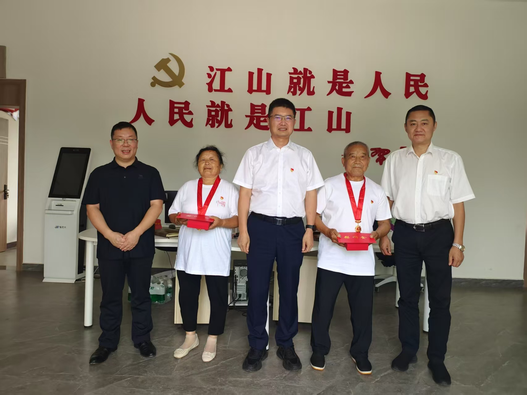 在富新镇新塘村党群服务中心,席代金看望慰问两名党龄满50年的老党员,为他们颁发“光荣在党50年”纪念章。随后,他与基层党员干部一起拉家常、话文旅、谋发展,宣讲省委十二届七次全会精神并讲授专题党课。