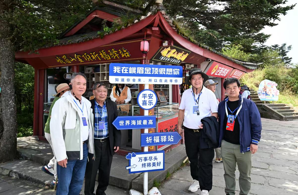 在峨眉山金顶,嘉宾们领略了峨眉山独特的自然景观与深厚的文化底蕴。沿途层峦叠嶂、云海翻涌的壮丽景象令人叹为观止,来宾们纷纷驻足摄影留念。西班牙华侨华人协会名誉主席毛峰由衷感慨:“久闻峨眉山景色秀丽,今日登临金顶,更觉其雄伟壮观,令人震撼。”谈及此次乐山之行的感受,毛峰表示,“这里不仅拥有令人沉醉的自然风光,其特色美食同样令人难忘。期待未来能有机会将乐山美食文化推广至西班牙,并进一步向全球传播。”老挝国家工商会驻华首席代表、澜湄教育培训联盟理事长杨东伦说:“峨眉山集壮丽的自然景观与深厚的人文底蕴于一体,其独特的生态资源禀赋与悠久的文化传承相得益彰。我们深信,凭借这些得天独厚的优势,峨眉山必将进一步彰显其国际影响力,成为全球游客心驰神往的旅游胜地。”