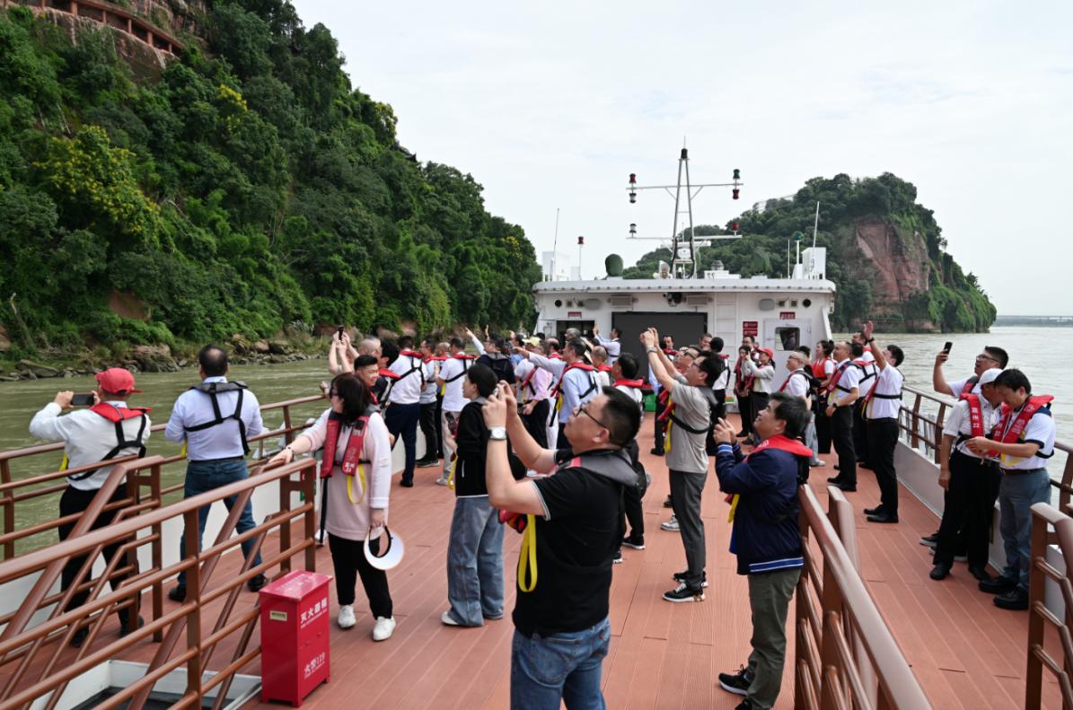 在乐山大佛景区,嘉宾们乘船近距离观赏这一世界文化与自然双重遗产,通过独特的水上视角领略乐山大佛的雄伟气象。欧亚科学院(中国)院士、中国侨联特聘专家委员会副主任李乃胜说:“在这里,我们体会到了三江汇流于大佛脚下的壮美,也体会到了群峰集萃于峨眉之巅的气势。特别是了解到乐山历史悠久、名人辈出,文化底蕴深厚,工业基础扎实,自然资源丰富,是一座集名人、名佛、名山、名水于一体的特色名城。此行令人倍感振奋,获益良多!踏上这片神奇而充满活力的土地,深感其非凡魅力,是一次极具价值的体验!”