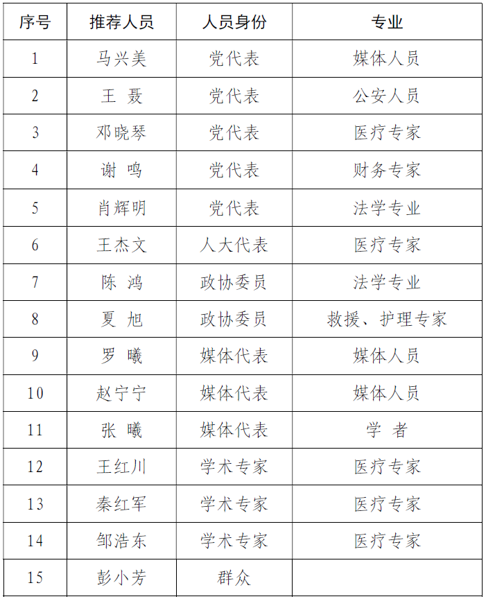 为进一步动员社会各界参与医疗保障基金监管,持续保持严厉打击欺诈骗保的高压态势,全方位维护医保基金安全。根据《乐山市医疗保障基金社会监督员管理办法》的有关规定,经个人报名、电话征询、资料审核,乐山市医疗保障局拟聘任乐山市医疗保障基金社会监督员15名,名单如下(排名不分先后):