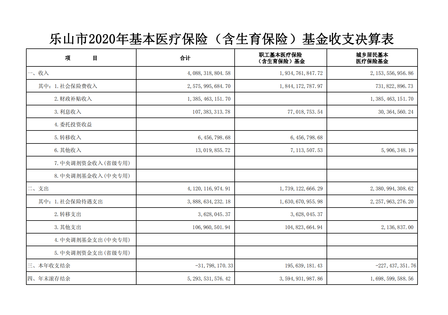 2020年基本医疗保险(含生育)收支决算表