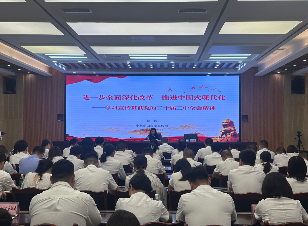 9月11日,学习贯彻党的二十届三中全会精神市委宣讲团报告会在沙湾区举行,市委宣讲团第二分团成员、市委宣传部常务副部长杨丹作宣讲报告。