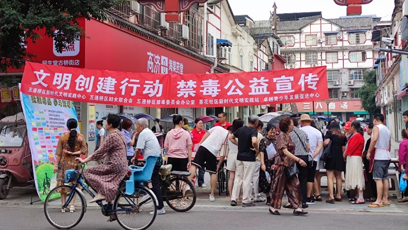 禁毒横幅拉满街头巷尾,禁毒宣传资料现场发放,毒品危害知识科普讲解......近日,五通桥区禁毒委、五通桥区新时代文明实践中心以“国际禁毒日”为契机,组织开展禁毒宣传活动,将禁毒知识带进家庭、社区,增强群众拒毒、防毒意识,进一步营造全民禁毒的良好氛围。五通桥区还凝聚志愿力量,依托新时代文明实践中心(所、站)和“1+8+10+N”志愿服务队伍,在全区广泛开展各类志愿服务,引导广大群众积极参与创文活动,让志愿服务为创文“造形铸魂”。