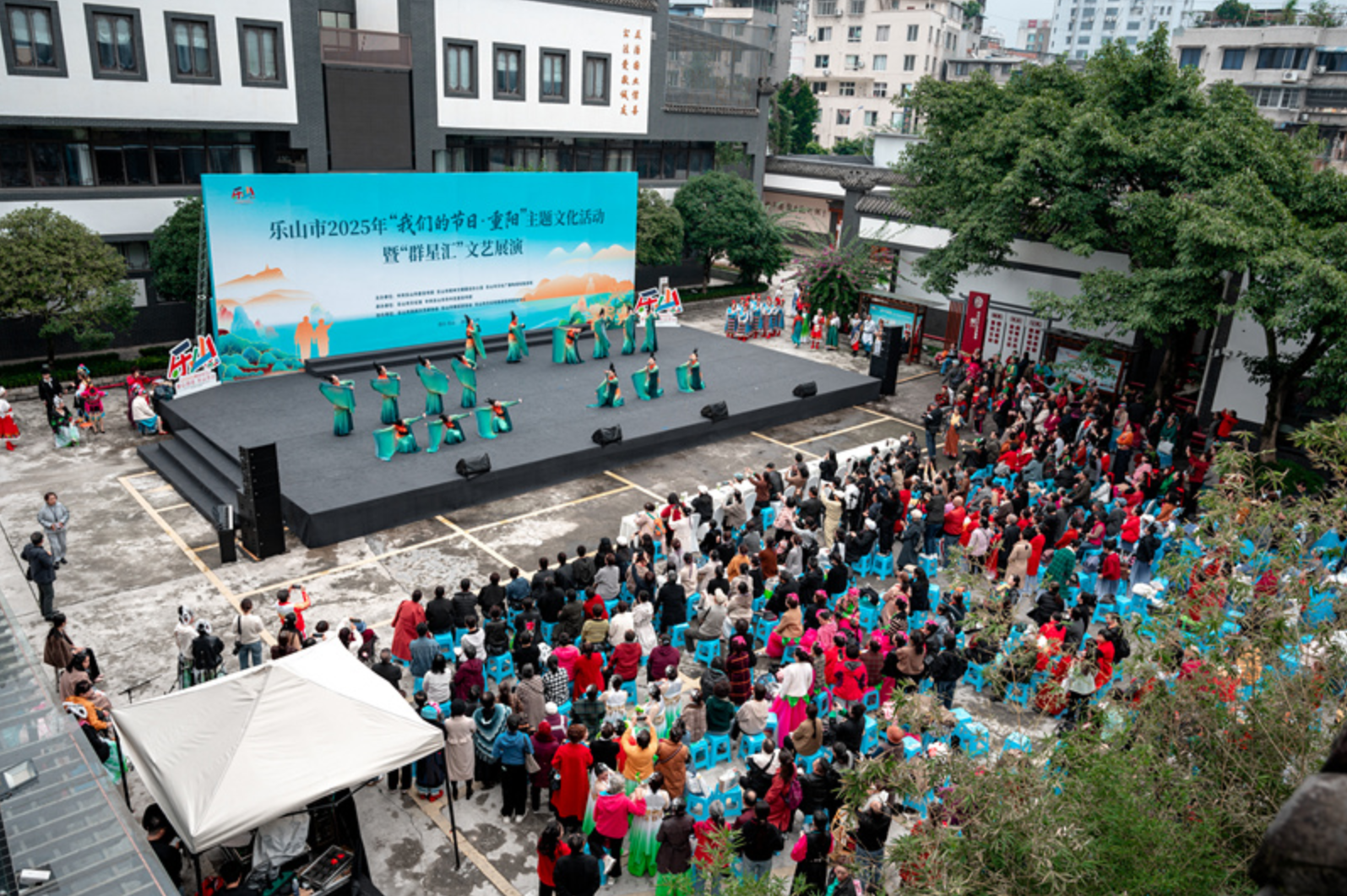 本次活动由中共乐山市委宣传部、乐山市精神文明建设办公室、乐山市文化广播电视和旅游局主办,乐山市文化馆、中共乐山市市中区委宣传部承办,乐山市民间文艺家协会、乐山市舞蹈家协会、乐山市音乐家协会、乐山市文化和旅游宣传促进中心协办。同时,现场还组织医护人员为老年朋友开展义诊等文明实践活动。