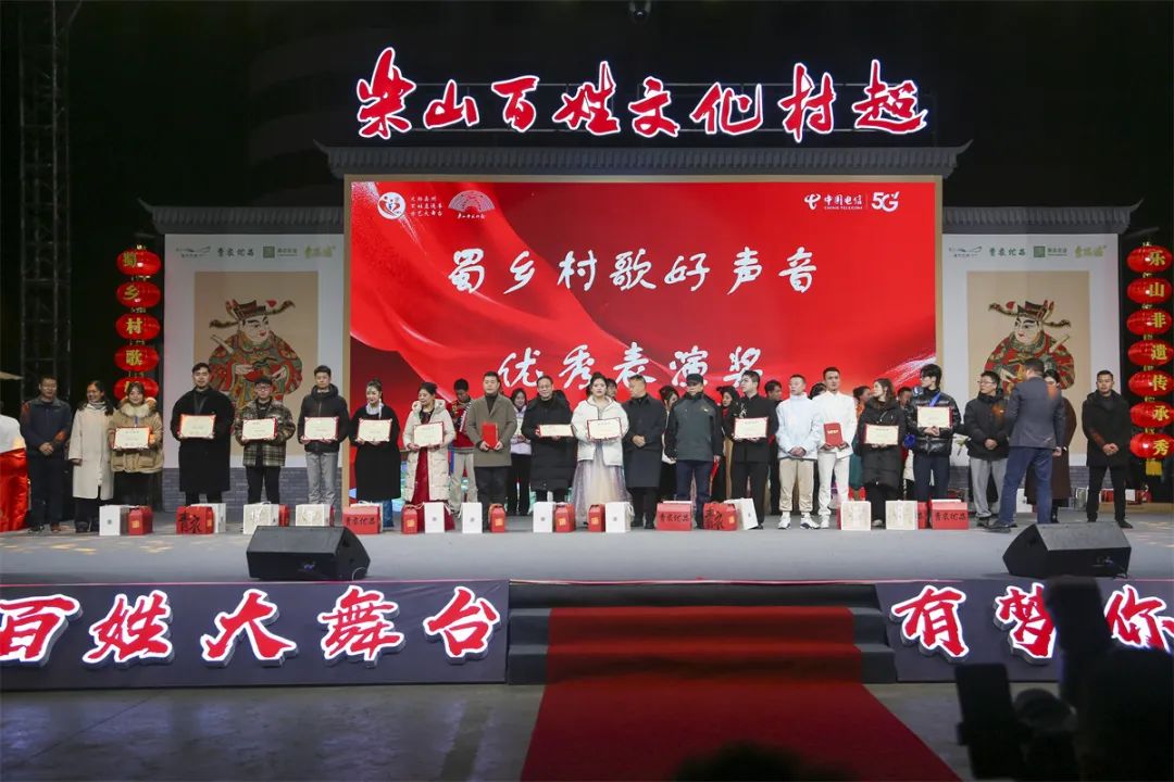 12月28日,由四川省文化馆、四川省群文学会、中共乐山市委宣传部、中共乐山市委社工部、中共乐山市委网信办、乐山市文化广播电视和旅游局、乐山市民政局、乐山市农业农村局指导,夹江县人民政府、乐山市文化馆、中国电信股份有限公司乐山分公司主办的,以“蜀乡村歌好声音·乐山非遗传承秀”为主题的第二届乐山百姓文化村超总决赛“蜀乡村歌好声音”歌曲大比拼在夹江县落下帷幕。