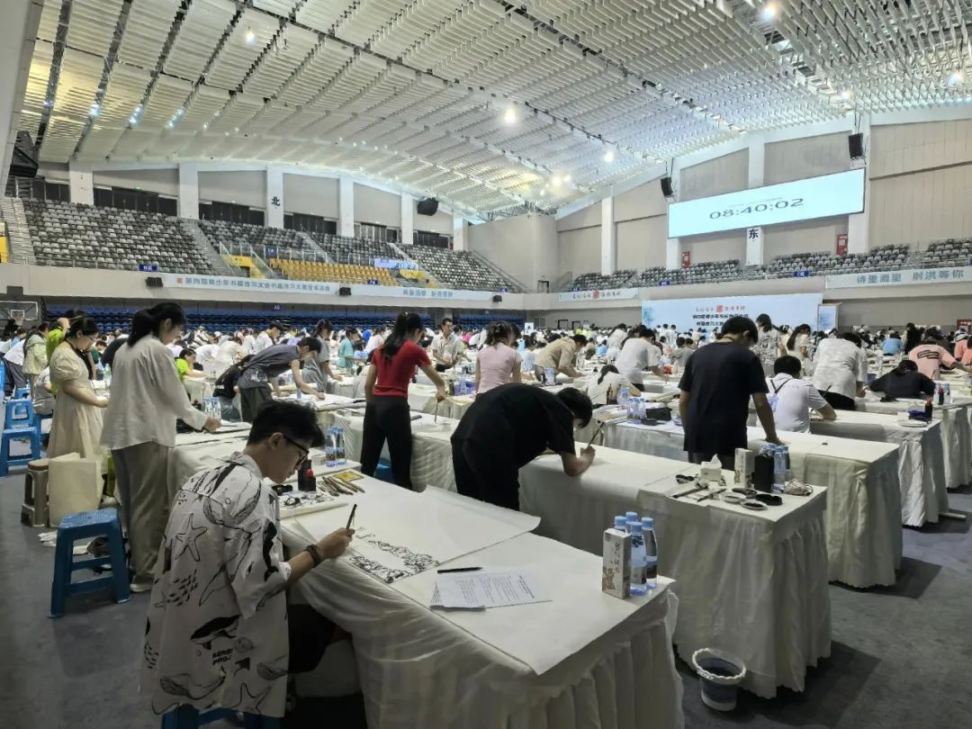 比赛过程中,参加中国画比拼的选手挥毫泼墨,演绎色彩韵律,勾勒出一幅幅意境深远的山水画卷、栩栩如生的人物肖像、生机勃勃的花鸟图景;参加中国书法比拼的选手手执毛笔,墨锋在宣纸上轻盈舞动游走,让整个空间萦绕着陈墨与新纸交融的幽香。