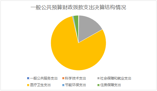 2016年一般公共预算财政拨款支出13011.76万元,主要用于以下方面:一般公共服务支出10.68万元,占0.08%;科学技术支出29.53万元,占0.23%;社会保障和就业支出2149.16万元,占16.51%;医疗卫生支出10358.36万元,占79.61%;节能环保支出70万元,占0.54%;住房保障支出394.08万元,占3.03%。(饼状图)