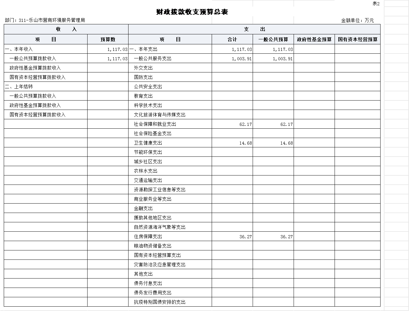 四、财政拨款收支预算总表(公开表2)