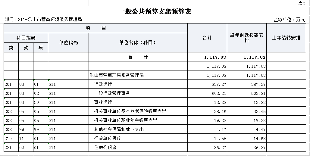 第二部分 乐山市营商环境服务管理局2022年部门预算表