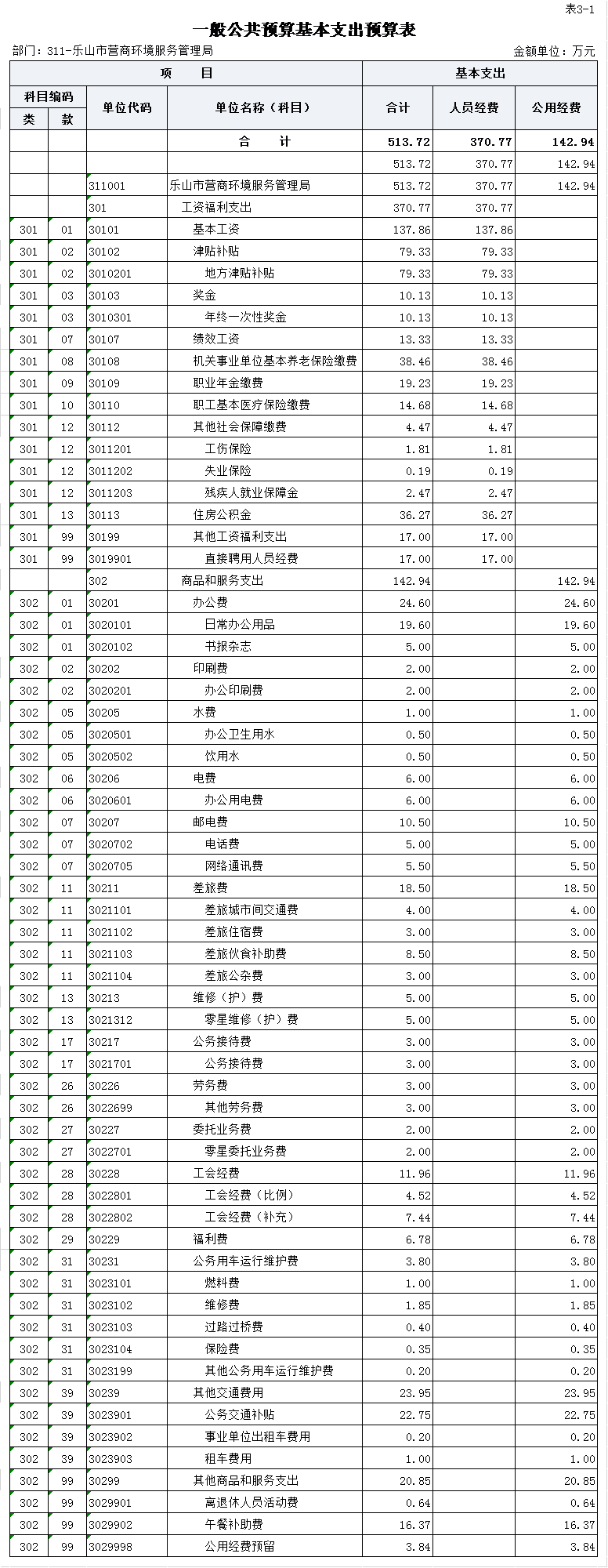 乐山市营商环境服务管理局2022年一般公共预算基本支出513.72万元,其中: