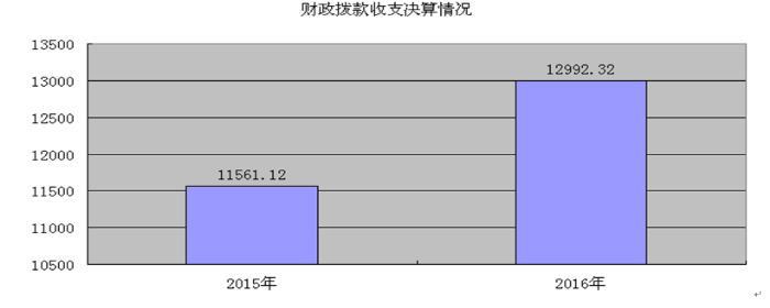 乐山市民政局2016年度财政拨款收支总决算12992.32万元。与2015年相比,财政拨款收、支总计各增加1431.2万元,增加12.38%。