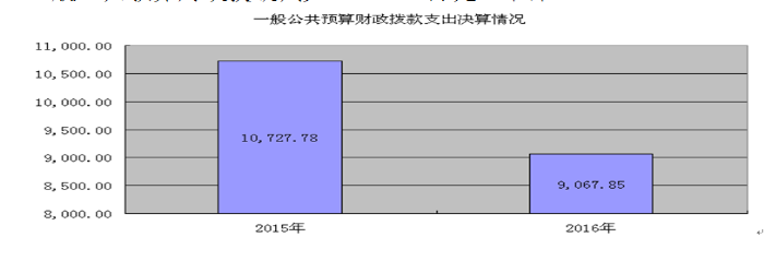乐山市民政局2016年度一般公共预算财政拨款支出9067.85万元,占本年支出合计的50.18%。与2015年相比,一般公共预算财政拨款减少1659.93万元,下降15.47%。