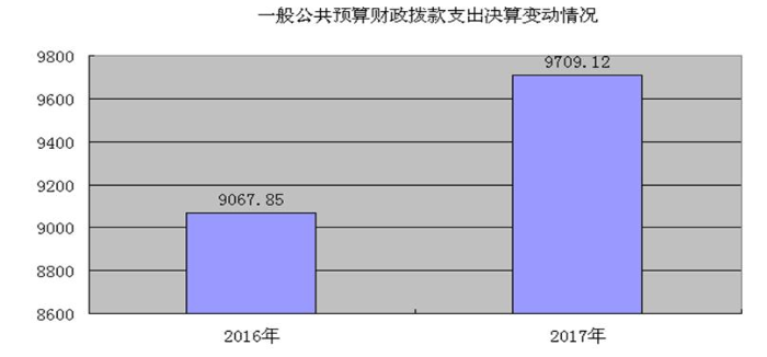2017年度一般公共预算财政拨款支出9709.12万元,占本年支出合计的67.85%。与2016年相比,一般公共预算财政拨款增加641.27万元,增长7.07%。