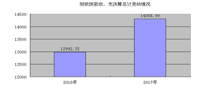 2017年度财政拨款收、支总计14308.99万元。与2016年相比,财政拨款收、支总计各增加1316.67万元,增长10.13%,原因是:2017年财政加大对民生保障工作的投入力度,财政拨款项目经费增加。