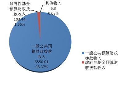 2017年乐山市财政局本年收入合计6658.75万元,其中:一般公共预算财政拨款收入6550.01万元,占98.37%;政府性基金预算财政拨款收入103.44万元,占1.55%;国有资本经营预算财政拨款收入0万元,占0%;事业收入0万元,占0%;经营收入0万元,占0%;附属单位上缴收入0万元,占0%;其他收入5.3万元,占0.08%。