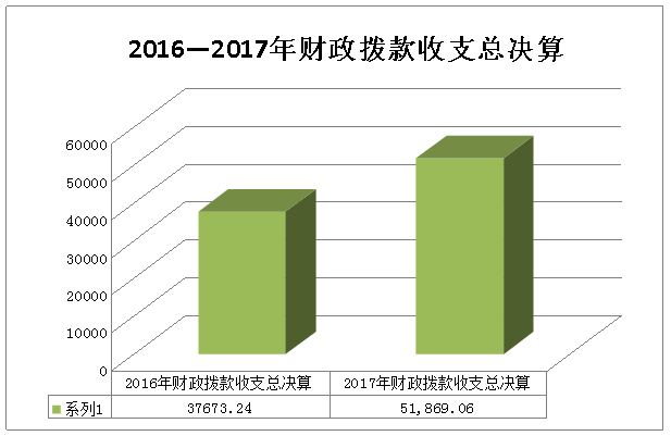 2017年度财政拨款收、支总计51869.06万元。与2016年相比,财政拨款收、支总计各增加14195.82万元,增长37.68%,主要原因是:2017年学校建设项目增多,资金投入加大,如第三期学前教育计划、乐山一中一期扩建工程、乐山一职中新校园建设等。