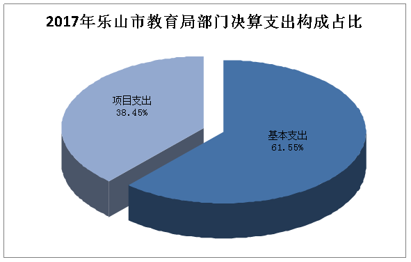 2017年乐山市教育局本年支出合计41896.02万元,其中:基本支出25786.81万元,占61.55%;项目支出16109.21万元,占38.45%。