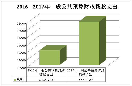 2017年度一般公共预算财政拨款支出35912.87万元,占本年支出合计的85.72%。与2016年相比,一般公共预算财政拨款增加3931.8万元,增长12.29%。