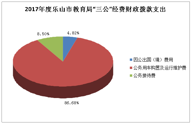 2017年度“三公”经费财政拨款支出决算中,因公出国(境)费支出决算4.1万元,占4.82%;公务用车购置及运行维护费支出决算73.76万元,占86.68%;公务接待费支出决算7.23万元,占8.5%。具体情况如下: